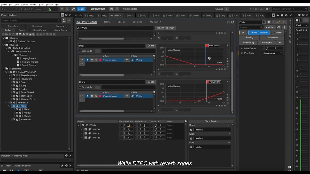 Dynamic Audio Systems Built a crowd ambience layer using a Walla RTPC tied to reverb zones, creating a sense of space that shifts with the environment. Implemented a health-based heartbeat RTPC that intensifies as the player takes damage, reinforcing tension through audio feedback.